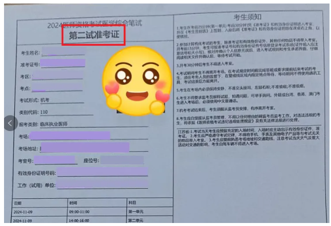 各位考生,2025年國家醫(yī)師資格考試醫(yī)學(xué)綜合考試“一年兩試”第二試將于11月8日至9日舉行,現(xiàn)就有關(guān)事項(xiàng)溫馨提示如下: