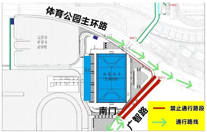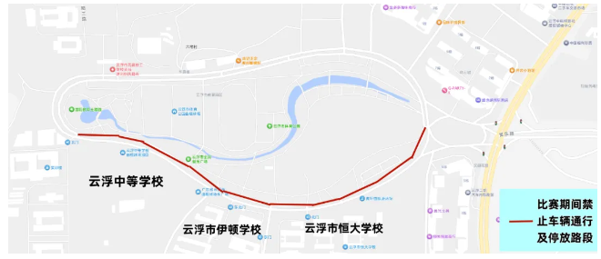 (1)2025年10月30日至11月15日,每場比賽開賽前半小時至運(yùn)動員離場后半小時,對體育公園內(nèi)環(huán)路(云浮中等學(xué)校門前至出入口環(huán)島路段)實(shí)施臨時交通管制。臨時交通管制期間除執(zhí)行任務(wù)的警車、消防車和工作保障車輛外,其他車輛禁止通行。
