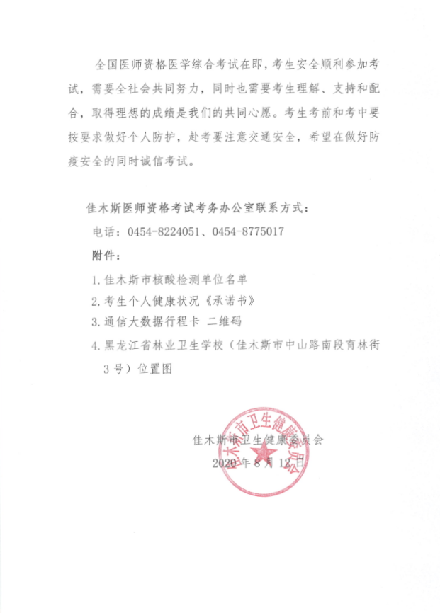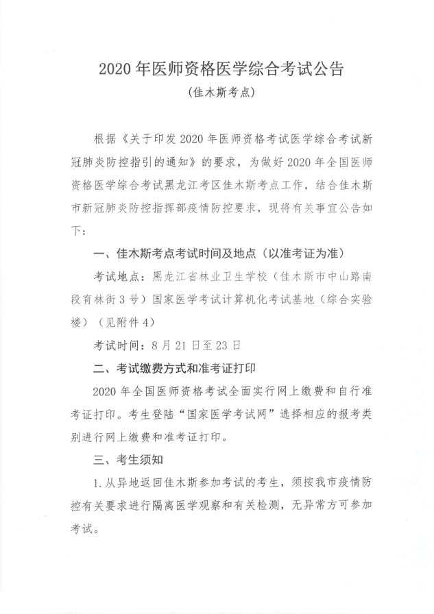 2020年佳木斯臨床執(zhí)業(yè)醫(yī)師考試醫(yī)學綜合筆試考試須知及溫馨提示