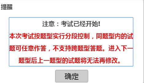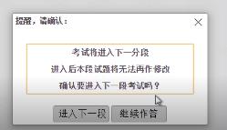 3.考試過程中,當(dāng)發(fā)生試題分段切換時,系統(tǒng)會繼續(xù)提醒: