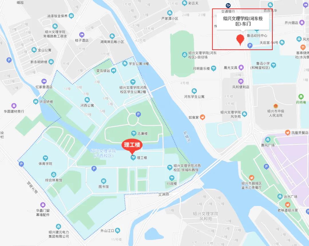 5、本次考場(chǎng)出入口為紹興文理學(xué)院河?xùn)|校區(qū)東大門,即環(huán)城西路508號(hào)(魯迅小學(xué)對(duì)面)。所有考生從專用考試通道進(jìn)出機(jī)考考場(chǎng),避免和無(wú)關(guān)人員交叉。