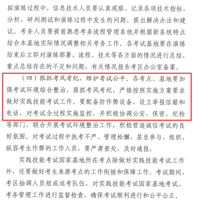 山東省在技能考試方案中提到要強化考務(wù)管理,提到要加強考試流程的信息化管理,狠抓考風(fēng)考紀(jì)。