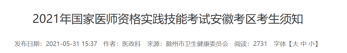 滁州市2021年臨床執(zhí)業(yè)醫(yī)師實(shí)踐技能考試時(shí)間/考前須知/溫馨提示