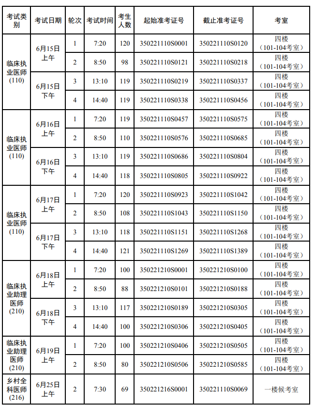 福州市2021年臨床執(zhí)業(yè)醫(yī)師實(shí)踐技能考試考生安排表