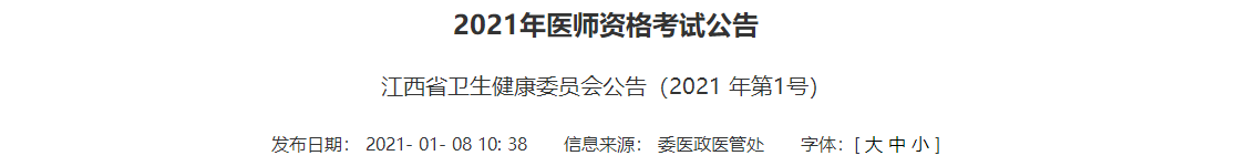 通知原文:江西考區(qū)2021年國家醫(yī)師資格考試報(bào)名/現(xiàn)場審核/考試時(shí)間公告發(fā)布!