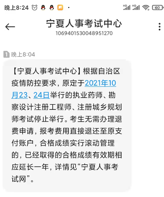 根據(jù)《甘肅考區(qū)關(guān)于停止舉行10月23、24日資格考試、延期舉行下半年事業(yè)單位招聘考試》原定于2021年10月23、24日舉行的執(zhí)業(yè)藥師、勘察設計注冊工程師、注冊城鄉(xiāng)規(guī)劃師考試停止舉行,在甘肅省上述資格考試報名成功的報考人員,無需辦理退費申請,報考費用直接退還至原支付賬戶,參加2020年度執(zhí)業(yè)藥師、注冊城鄉(xiāng)規(guī)劃師考試取得的合格成績有效期相應延長一年。