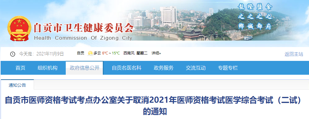 自貢市醫(yī)師資格考試考點(diǎn)辦公室關(guān)于取消2021年醫(yī)師資格考試醫(yī)學(xué)綜合考試(二試)的通知