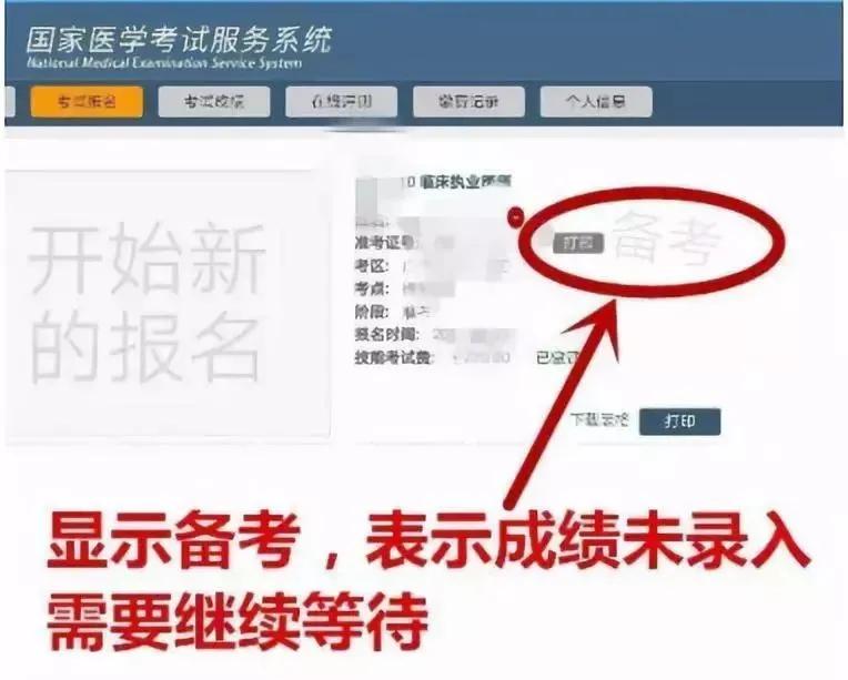 ★顯示備考或者技能:表示當(dāng)?shù)匦l(wèi)生局還沒有傳送成績到國家考試中心,需繼續(xù)等候。
