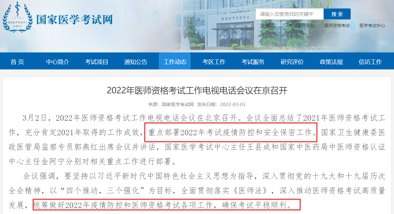 近期,關(guān)于醫(yī)師資格考試安排,國(guó)家醫(yī)學(xué)考試網(wǎng)發(fā)布通知:統(tǒng)籌做好2022年疫情防控和醫(yī)師資格考試各項(xiàng)工作,確??荚嚻椒€(wěn)順利。