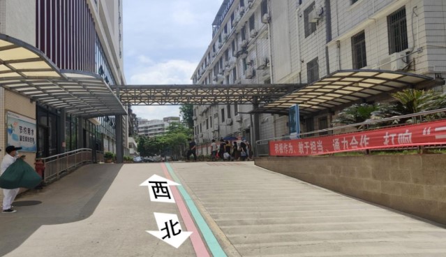 1)考生到達廣東醫(yī)科大學附屬醫(yī)院東北門后,(如圖一所示)沿西南方向箭頭所示進入廣東醫(yī)科大學附屬醫(yī)院。