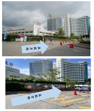 1.考生到達(dá)基地依托醫(yī)院大門后沿下圖箭頭所示東北方向右側(cè)路直走下坡直行。