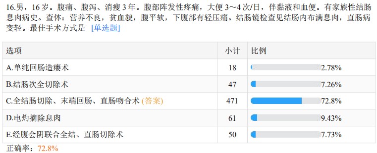 “家族性結(jié)腸息肉病”正確率72.8%(臨床醫(yī)師基礎(chǔ)摸底)