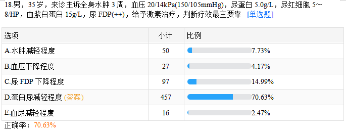 “腎病綜合征”??颊_率70.63%(臨床執(zhí)業(yè)醫(yī)師摸底測(cè)評(píng))