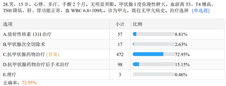 抗甲狀腺藥物治療適應證【模考正確率72.95%】