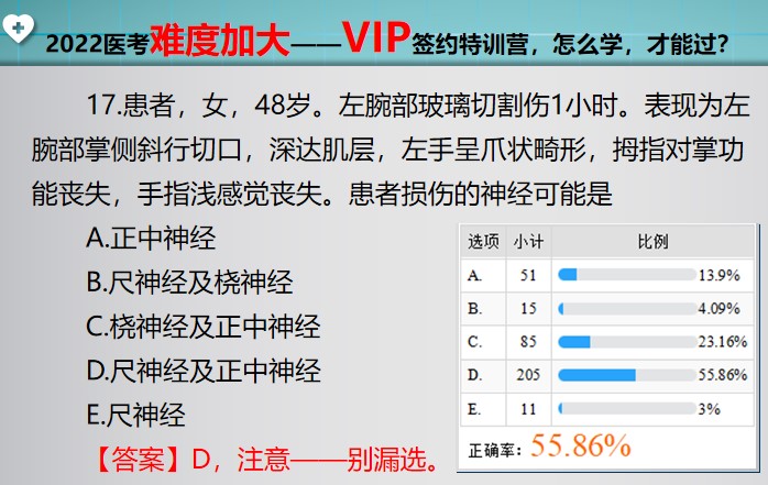 臨床執(zhí)業(yè)醫(yī)師案例:患者,女,48歲。左腕部玻璃切割傷1小時(shí)。2022年臨床執(zhí)業(yè)醫(yī)師考試難度加大,出題方式跟往年不同,只看書本知識(shí),已經(jīng)很難應(yīng)對(duì)即將來(lái)臨的醫(yī)師資格考試,醫(yī)學(xué)教育網(wǎng)編輯為您整理VIP公開課題目如下,供大家參考學(xué)習(xí)。查看VIP課程>>