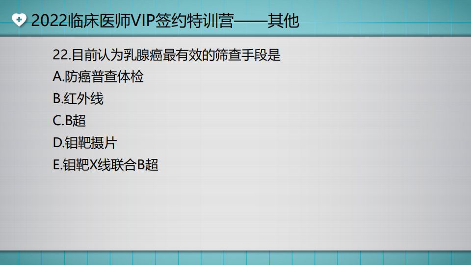 22.目前認(rèn)為乳腺癌最有效的篩查手段是