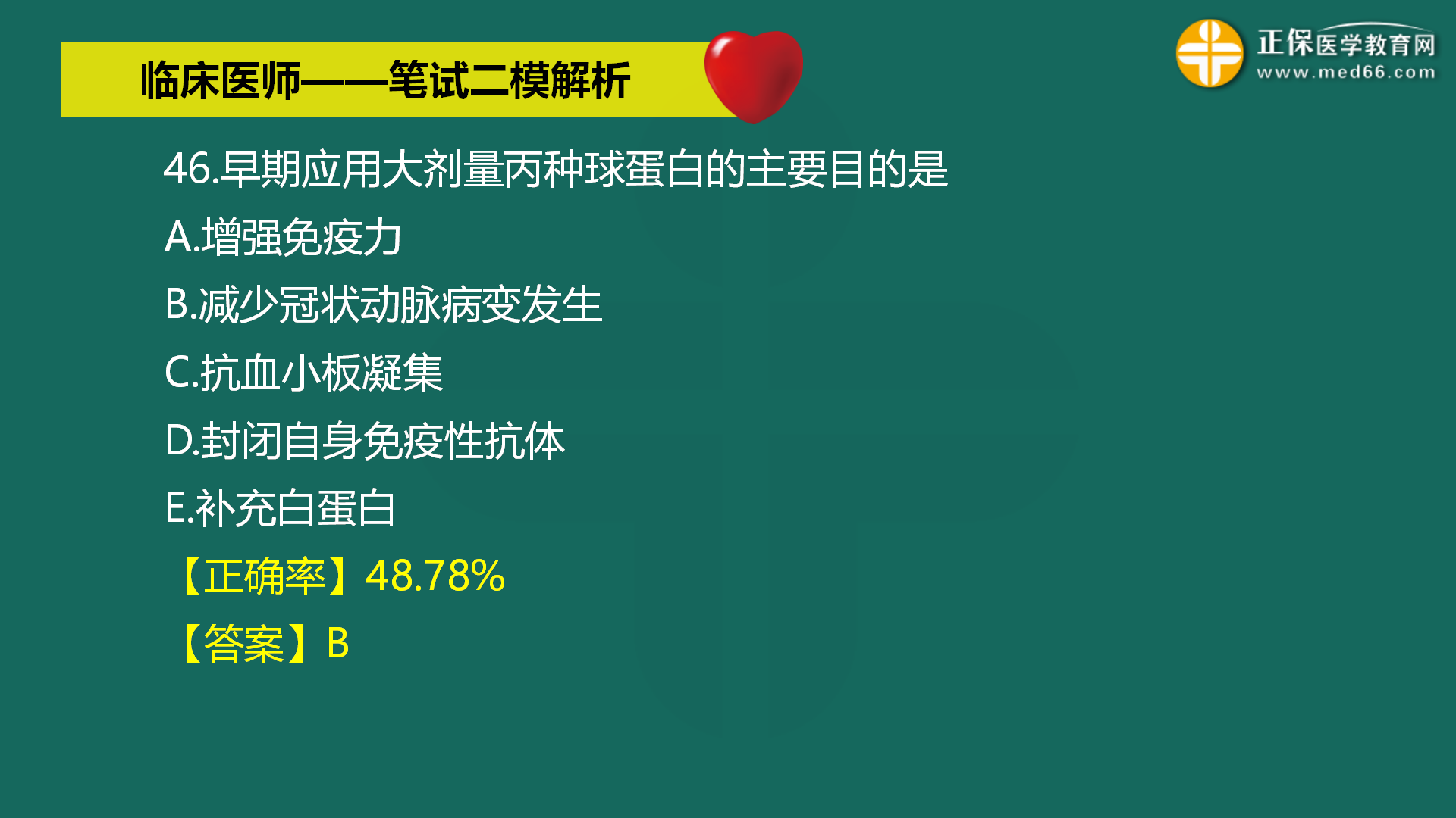 【正確率48.78%】早期應(yīng)用大劑量丙種球蛋白的主要目的是?全國(guó)2022年臨床執(zhí)業(yè)醫(yī)師??嫉诙拙砣肟诔掷m(xù)開放中(查看詳情>>),醫(yī)學(xué)教育網(wǎng)編輯整理分享疑難易錯(cuò)題有關(guān)內(nèi)容如下: