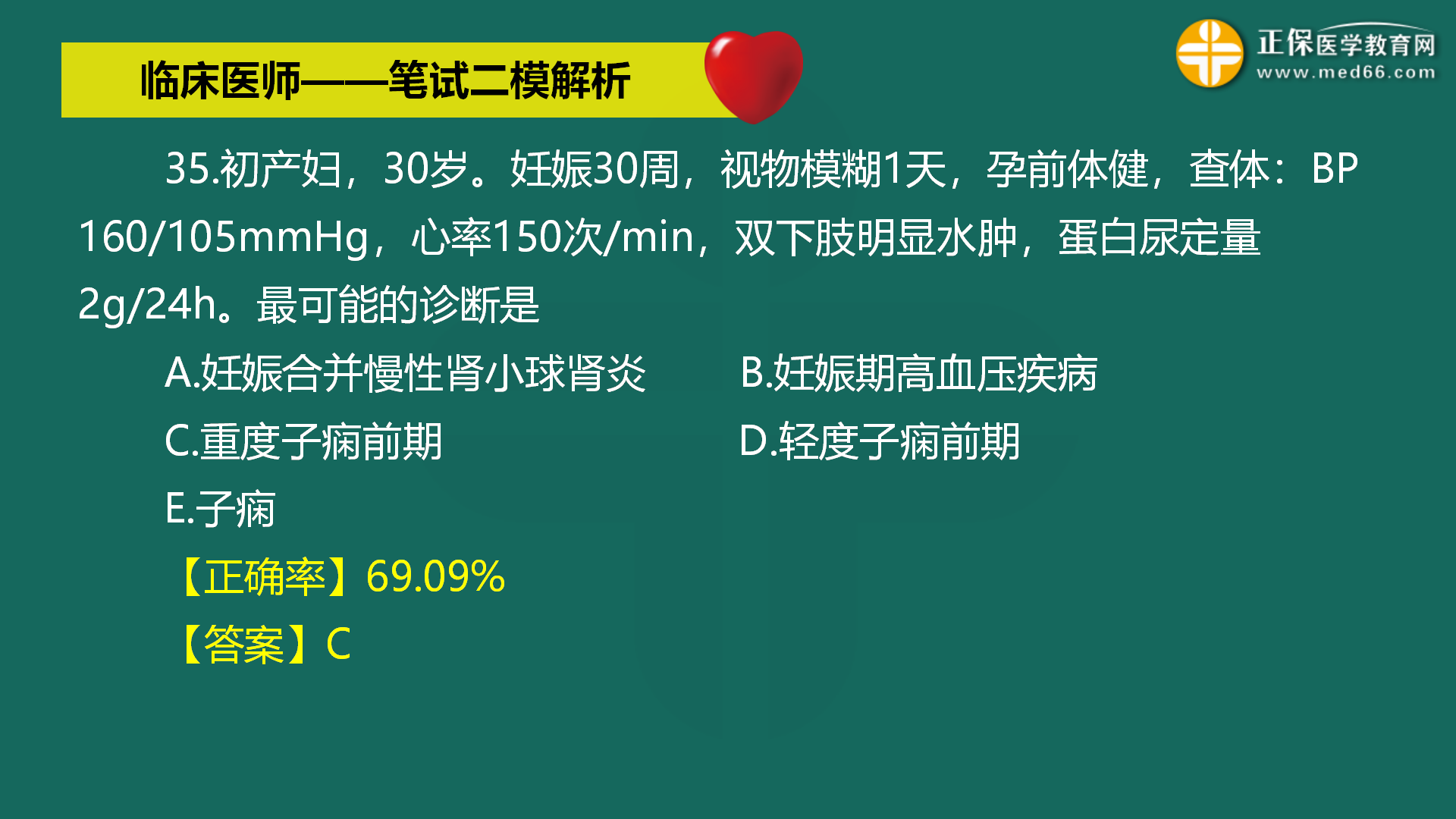 以上就是醫(yī)學(xué)教育網(wǎng)關(guān)于“初產(chǎn)婦,30歲。妊娠30周,視物模糊1天,孕前體健,最可能的診斷是?”的相關(guān)介紹,希望能夠幫助到大家,更多資訊盡在醫(yī)學(xué)教育網(wǎng)!