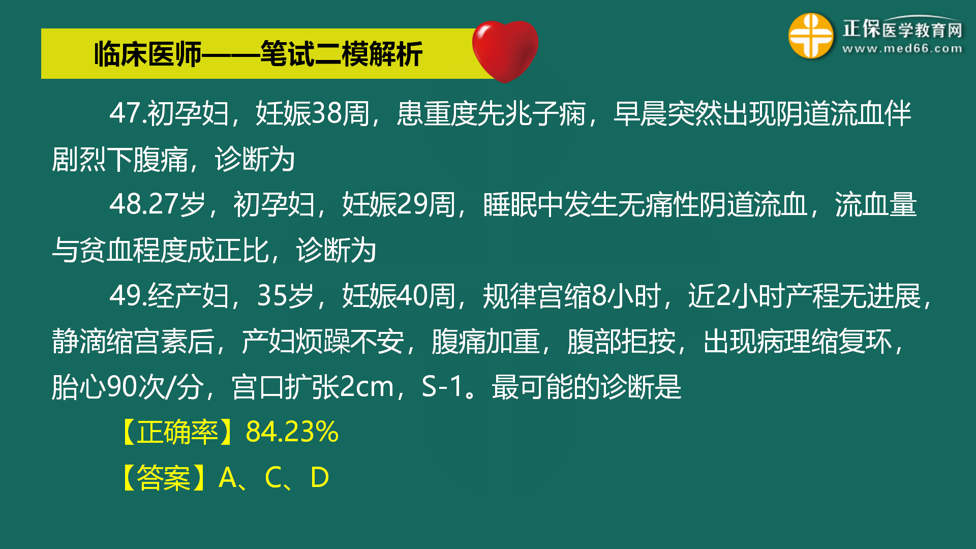 以上就是醫(yī)學(xué)教育網(wǎng)關(guān)于“【正確率84.23%】經(jīng)產(chǎn)婦,35歲,妊娠40周,規(guī)律宮縮8小時...”的相關(guān)介紹,希望能夠幫助到大家,更多資訊盡在醫(yī)學(xué)教育網(wǎng)!