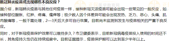 關(guān)于“新冠肺炎疫苗或出現(xiàn)哪些不良反應(yīng)?疼痛、瘙癢都正常嗎?”的問題,相信很多人近期都在關(guān)注,醫(yī)學(xué)教育網(wǎng)編輯為大家整理了衛(wèi)健委官方說明如下:
