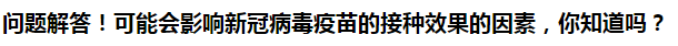 問(wèn)題解答!可能會(huì)影響新冠病毒疫苗的接種效果的因素,你知道嗎?