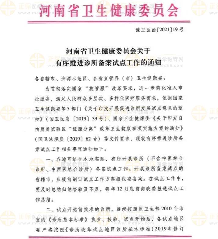 新版診所標(biāo)準(zhǔn)的推開,是否影響已開診所?不具備條件的地區(qū)如何開展?對于這些疑惑,河南省《通知》中都有明確要求。