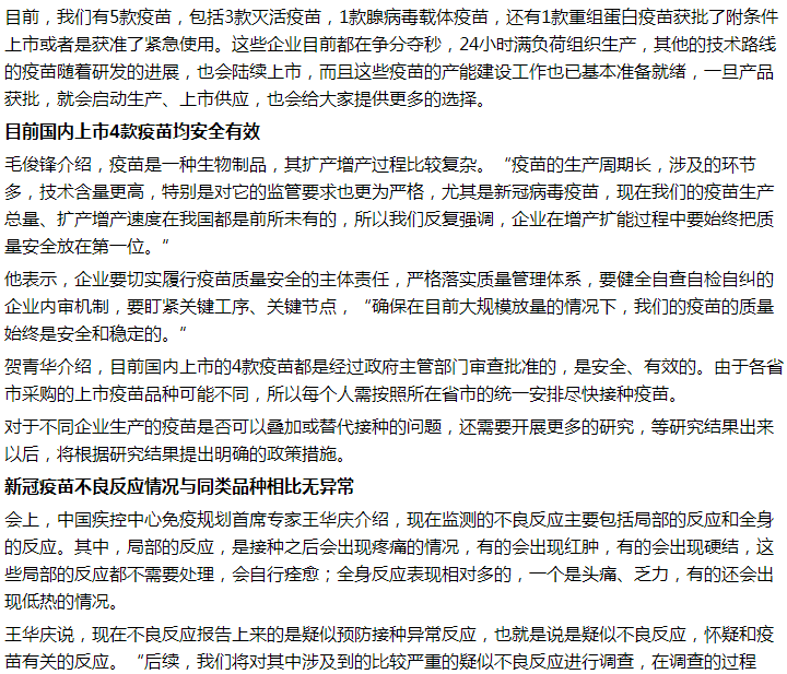 國(guó)內(nèi)疫苗年產(chǎn)量完全可滿足全國(guó)接種需求新的疫苗將陸續(xù)上市