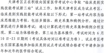 根據(jù)國家醫(yī)學考試網發(fā)布最新消息,2019年新三站地區(qū)分別為:北京、天津、湖北、安徽、寧夏、(之前公布上海地區(qū)取消,新增北京地區(qū))