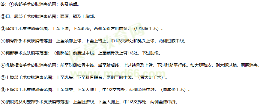 (3)各部位手術(shù)的消毒范圍如何?(1分)
