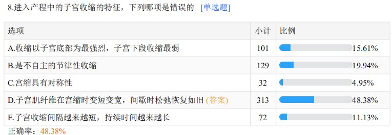 以上就是醫(yī)學(xué)教育網(wǎng)關(guān)于“臨床醫(yī)師“臨產(chǎn)后子宮收縮有四大特點(diǎn)”??紲y(cè)評(píng)正確率48.38%”的相關(guān)介紹,希望能夠幫助到大家,更多資訊盡在醫(yī)學(xué)教育網(wǎng)臨床執(zhí)業(yè)醫(yī)師欄目!