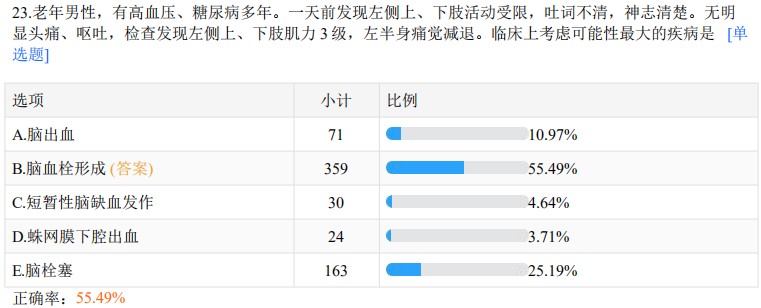 以上就是醫(yī)學(xué)教育網(wǎng)關(guān)于““腦血栓形成”??颊_率55.49%——臨床執(zhí)業(yè)醫(yī)師基礎(chǔ)摸底”的相關(guān)介紹,希望能夠幫助到大家,更多資訊盡在醫(yī)學(xué)教育網(wǎng)臨床執(zhí)業(yè)醫(yī)師欄目!
