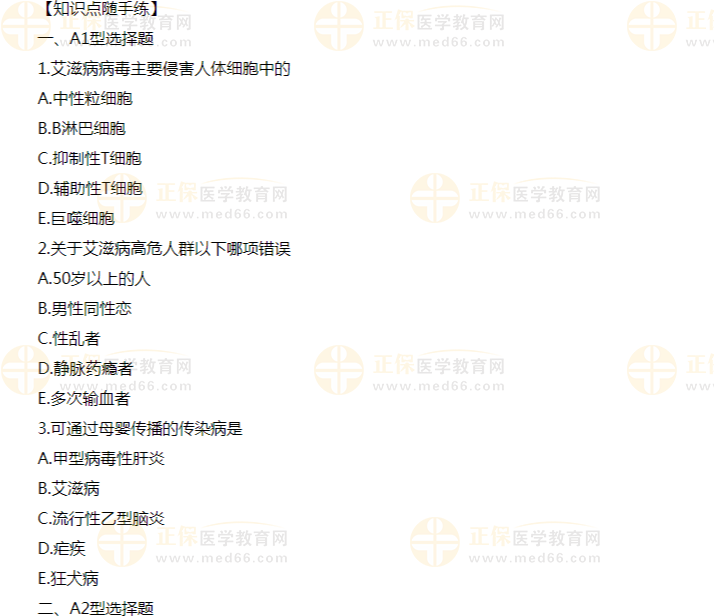 - · 2024臨床執(zhí)業(yè)醫(yī)師考綱知識點<HIV感染>小結(jié)及練習題