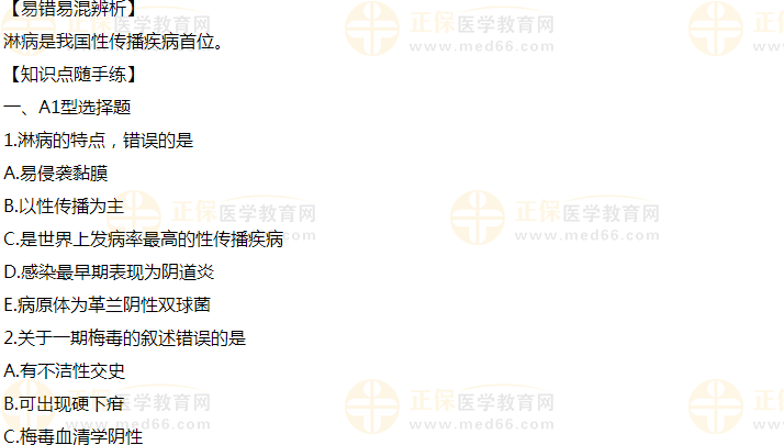 2021年臨床執(zhí)業(yè)醫(yī)師高頻試題練習(xí)梅毒VS淋?。ǜ侥M試題)