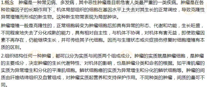 關(guān)于“臨床執(zhí)業(yè)醫(yī)師考試,腫瘤細(xì)胞分化程度高是指什么?”的內(nèi)容,相信很多考生都在關(guān)注,醫(yī)學(xué)教育網(wǎng)編輯為大家整理了腫瘤的概念與組織結(jié)構(gòu)考點(diǎn)及模擬試題,詳情如下: