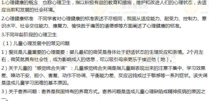 該知識(shí)的重點(diǎn)內(nèi)容是不同年齡階段的心理衛(wèi)生;尤其是兒童期和青少年期。