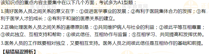 協(xié)調(diào)醫(yī)務(wù)人員之間關(guān)系的倫理要求:(1)共同維護(hù)患者的利益和社會公益。(2)彼此平等,互相尊重。(3)彼此獨(dú)立,互相支持。(4)彼此信任,互相協(xié)作。(5)互相學(xué)習(xí),共同提高。