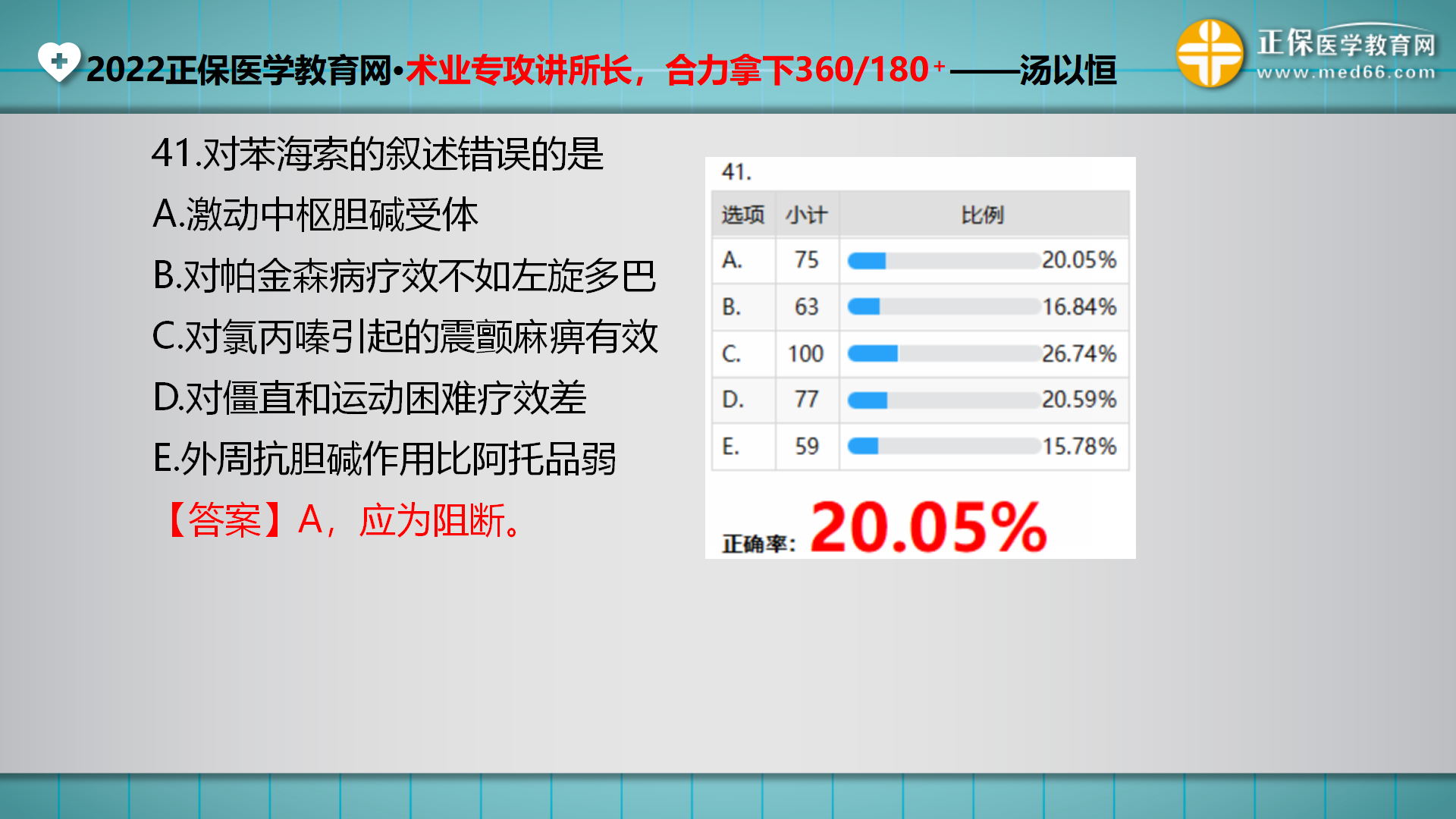 對苯海索的敘述錯誤的是:激動中樞膽堿受體【正確率20.05%】2022年臨床執(zhí)業(yè)醫(yī)師入學測評模考題如下,參加2022年臨床執(zhí)業(yè)醫(yī)師考試的同學,快來看看自己是否可以答對這道題吧!詳情如下: