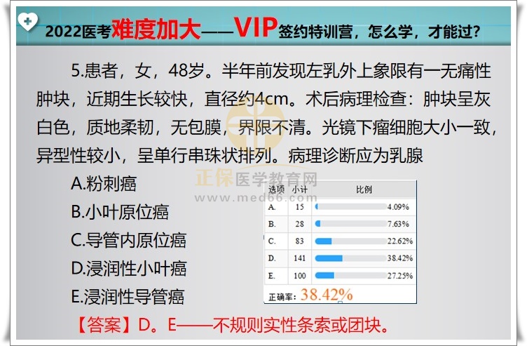 患者,女,48歲。半年前發(fā)現(xiàn)左乳外上象限有一無(wú)痛性腫塊...2022年臨床執(zhí)業(yè)醫(yī)師考試難度加大,出題方式跟往年不同,只看書(shū)本知識(shí),已經(jīng)很難應(yīng)對(duì)即將來(lái)臨的醫(yī)師資格考試,醫(yī)學(xué)教育網(wǎng)編輯為您整理VIP公開(kāi)課題目如下,供大家參考學(xué)習(xí)。查看VIP課程>>