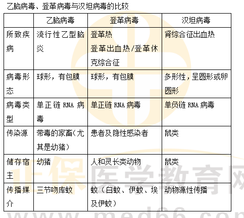 醫(yī)學教育網編輯整理分享“乙腦病毒、登革病毒與漢坦病毒的比較——臨床醫(yī)師資格考試必考知識點”內容如下,希望可以幫助大家鞏固復習相關考點!