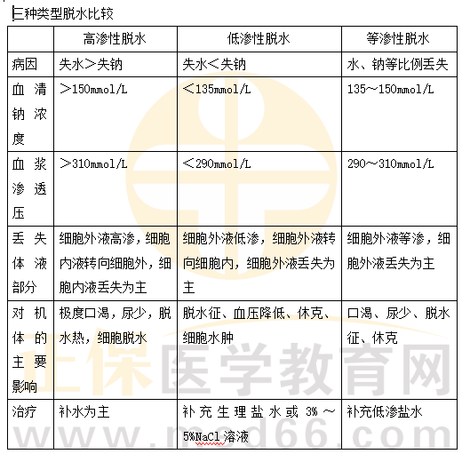 臨床醫(yī)師資格考試「每天一個(gè)知識(shí)點(diǎn)」三種類型脫水比較