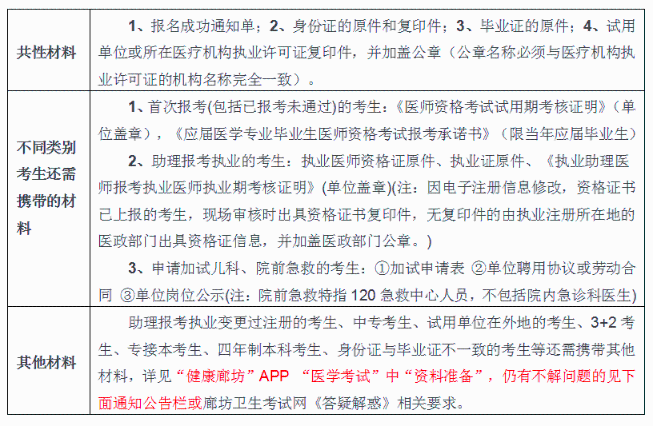 廊坊市2020年臨床執(zhí)業(yè)醫(yī)師現(xiàn)場審核所需材料清單