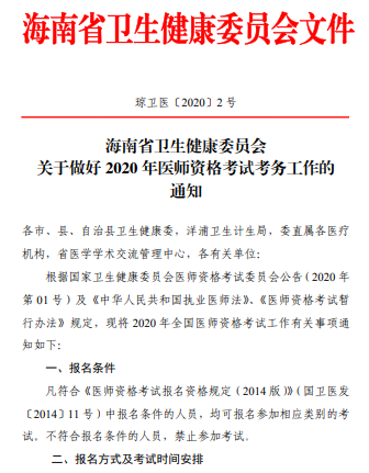 海南省2020年臨床執(zhí)業(yè)醫(yī)師現(xiàn)場審核等考務工作安排再次通知
