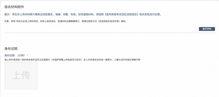 注意:這里顯示的內(nèi)容,是醫(yī)師資格考試所有可能需要的材料列表,考生根據(jù)自己的個人情況和報名要求,上傳所需的考試材料圖片。