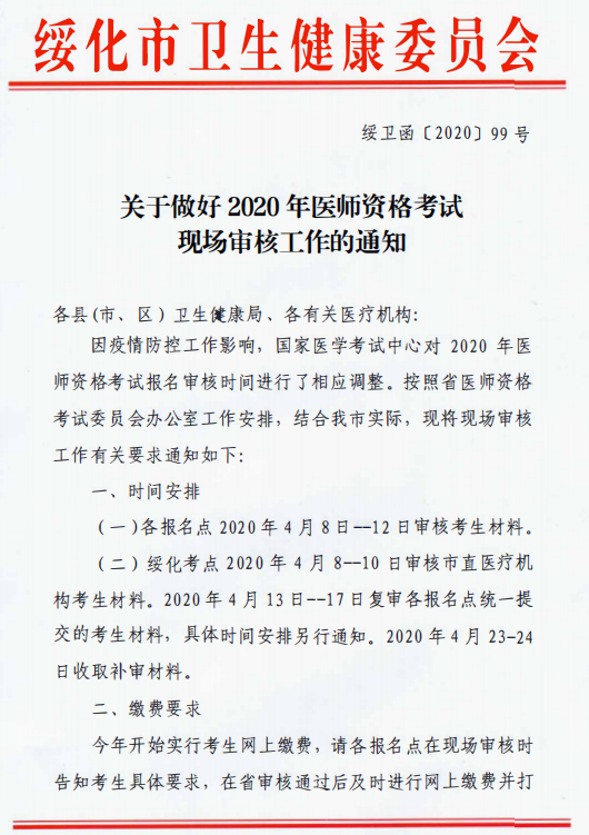 黑龍江綏化市2020年臨床執(zhí)業(yè)醫(yī)師現(xiàn)場確認審核等事項通知