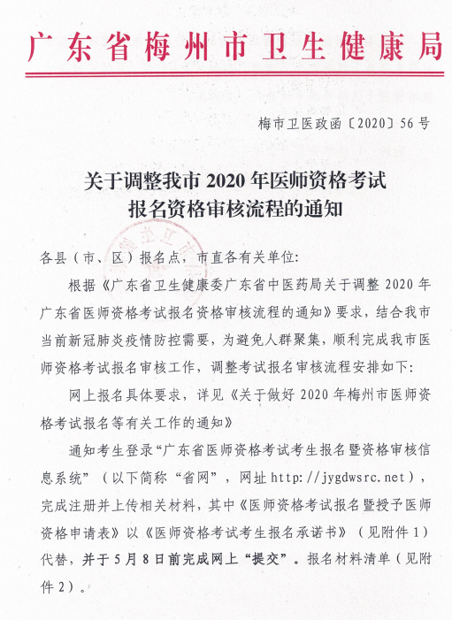 2020年廣東梅州市臨床執(zhí)業(yè)醫(yī)師報名現(xiàn)場確認審核流程調(diào)整