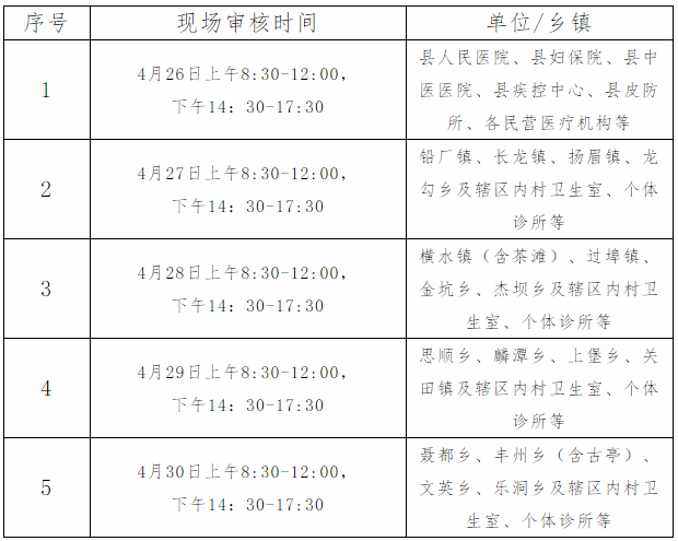 醫(yī)師資格考試現(xiàn)場(chǎng)審核時(shí)間安排表