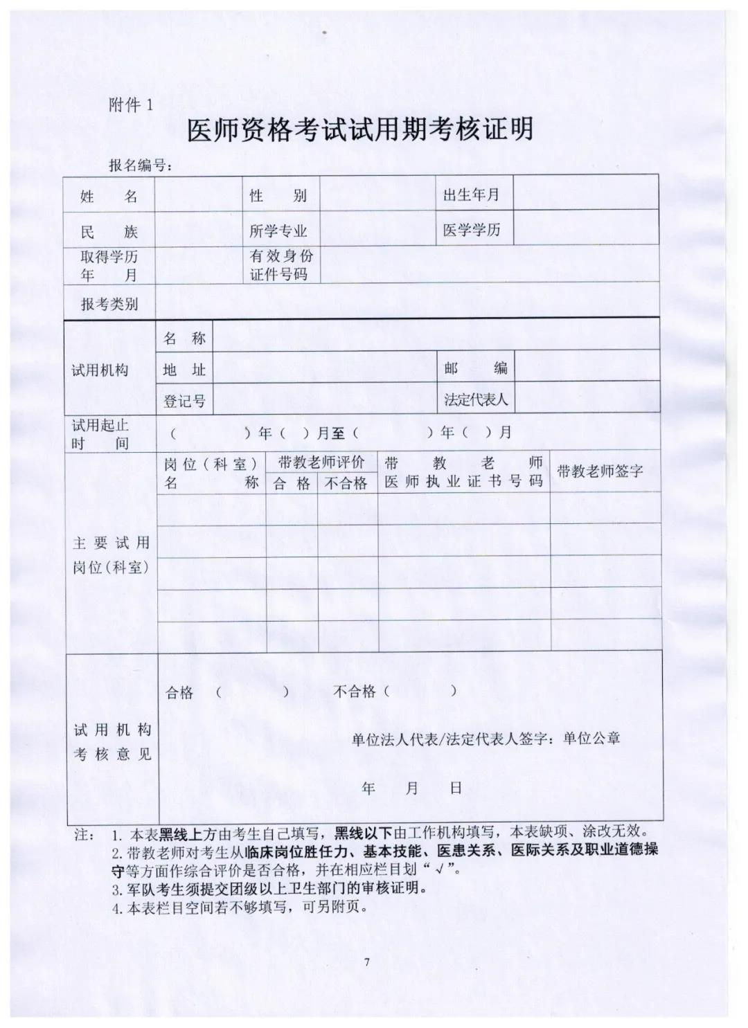 (4)《醫(yī)師資格考試試用期考核證明》(附件1)。