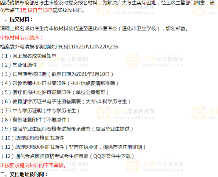 2021年臨床執(zhí)業(yè)醫(yī)師考試通化市考生注意3月12日提交審核材料!