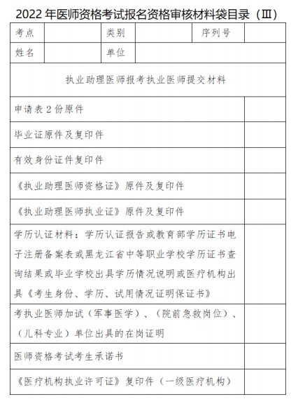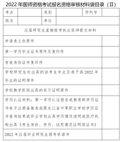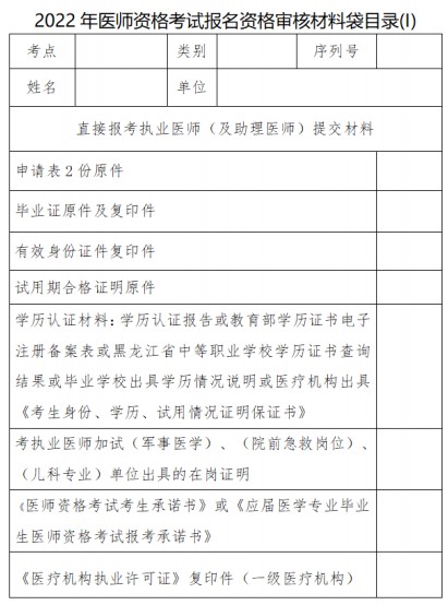 2022年醫(yī)師資格考試報名資格審核材料袋目錄