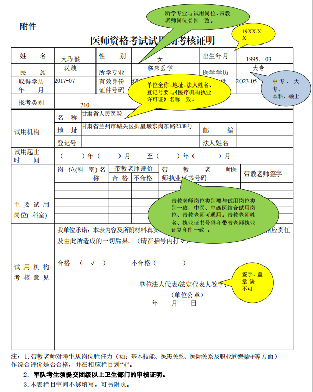 國家醫(yī)師資格考試報名2022年試用期考核證明怎么填?